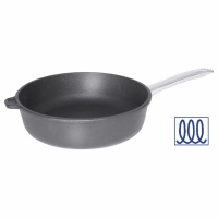 - hohe Form, aus handgegossenem Aluminium- Kokillenguss, Antihaftbeschichtung aus Titan- Aluminiumoxyd-Plasma, backofenfest bis +250°C, mit Stiel aus Edelstahl 18/10, hoher Wirkungsgrad auf Induktionsstellen durch Spezialbeschichtung, hochwertiges Qualitätsprodukt